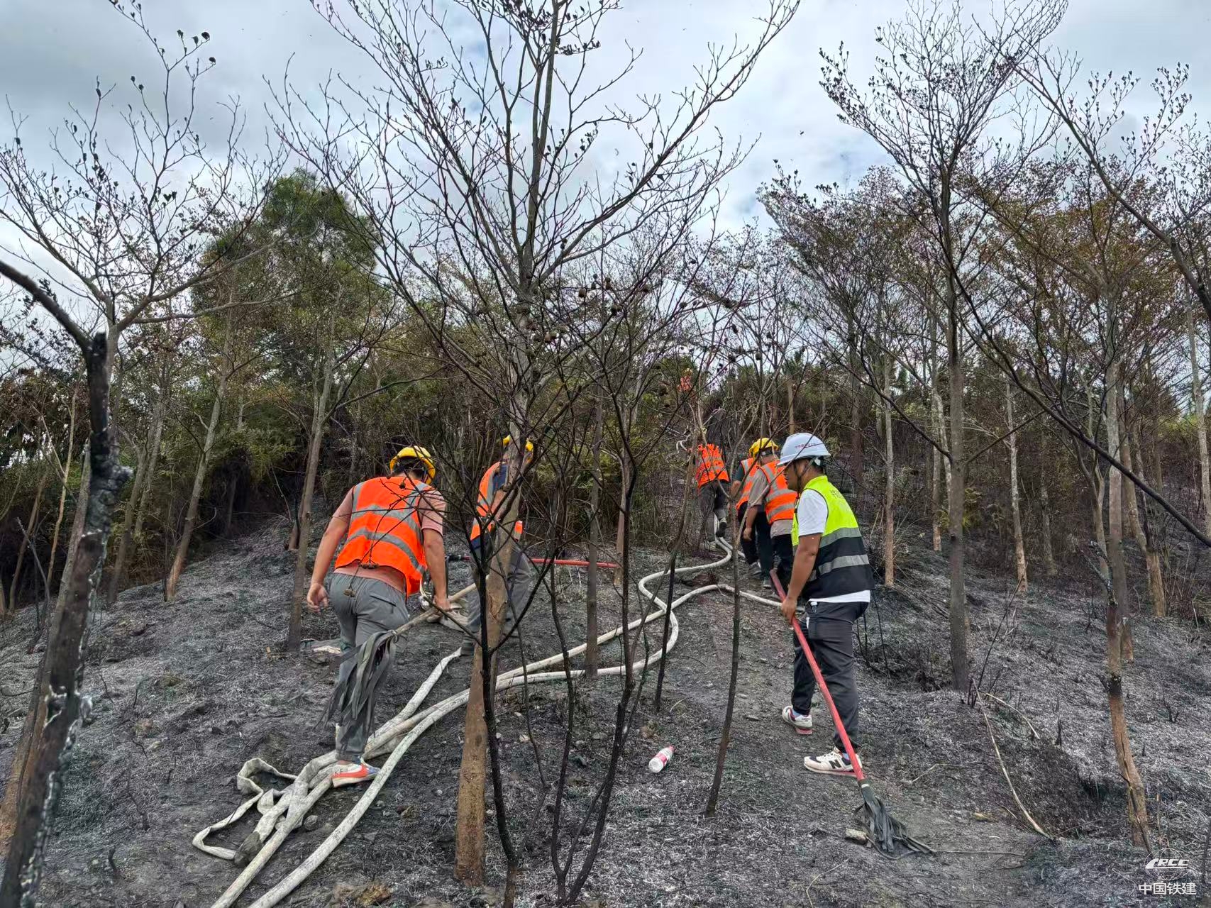 为防范山火复燃,20日,根据相关部署,项目部继续组织巡查力量,对过火区域开展系统监测。巡查队伍分上午、下午两个时段,对火灾现场进行细致排查,并使用专业工具对发现的多个复燃烟点进行及时处理。通过持续巡查,有效消除了余火隐患,巩固了扑救成果,防止了次生灾害的发生。