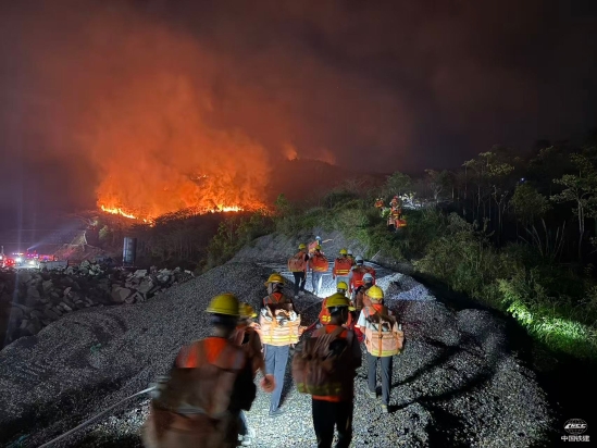 10月19日,广东省深圳市深汕合作区小漠镇突发山火。受风力影响,火势迅速蔓延,对当地生态安全和群众生命财产安全构成威胁。危急时刻,中铁十五局五公司碧海观山花园项目部积极响应,迅速组建应急救援突击队,连夜赶赴火场参与扑救工作。