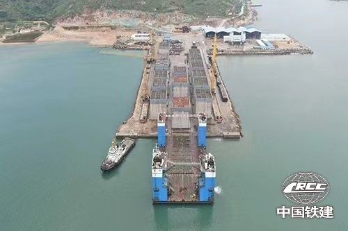 该项目共需预制安装沉箱32个。单个沉箱长18.27米,宽17米,高17.7米,重约2500吨,是重力式码头施工的关键结构。开工以来,项目部全面实施精细化管理,从施工方案科学预控、气象水文精准把控、设备工艺创新升级及施工管理精细优化等多维度发力,成功实现了安全生产前提下沉箱出运安装的“特快闪送”,铸就了响亮的“铁建港航速度”。