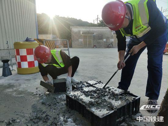 拌和站人员制作混凝土试块(郭忠法 摄)
